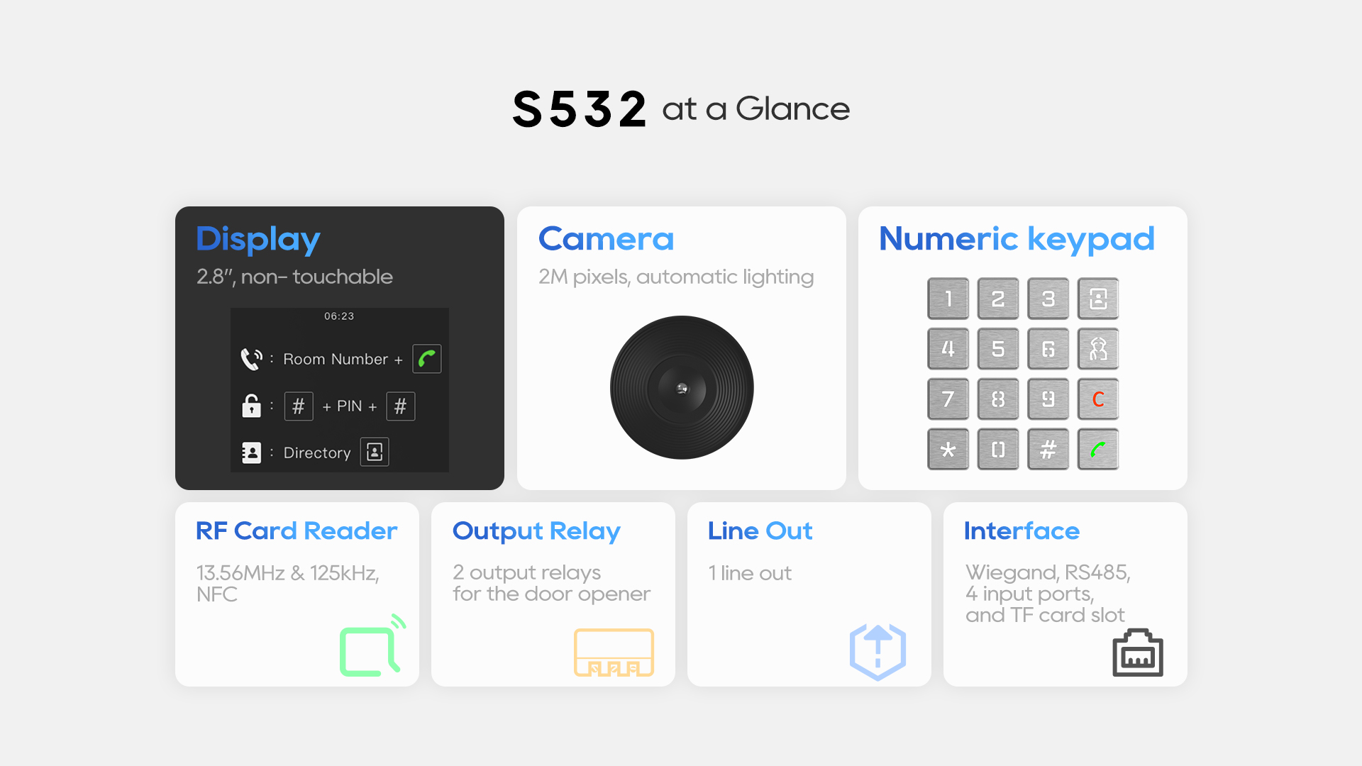 Flexibility is key with the Akuvox S532, offering support for multiple access control methods including PIN, NFC, 13.56MHz/125kHz access cards, and BLE (Bluetooth Low Energy). Seamlessly integrate it into your existing infrastructure, as it is compatible with analog intercom systems, ensuring a smooth transition without compromising functionality.