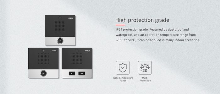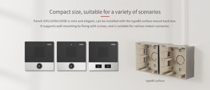 Fanvil 10SV is a mini SIP intercom, integrating access control, audio/video intercom and broadcasting functionalities. It supports wall mounting. With a dustproof, and waterproof design, it can be applied in many indoor scenarios and offer the best communication experience for users.