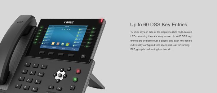The Fanvil X7C V2 boasts intelligent DSS keys, offering up to 60 entries (12 physical keys) to customise and streamline various functions. These keys provide quick access to frequently used features, applications, or contacts, optimising user efficiency and minimising the time spent navigating menus.