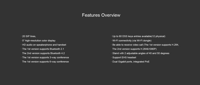 • 20 SIP lines, 3-way conference, hotspot